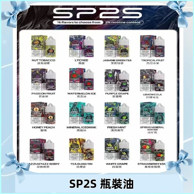 SP2S思博瑞電子菸品牌的產品一直都是台灣電子煙市場或其它地區的熱門品牌,受到煙民們的一致好評與回購。為跟進市場的脚步,SP2S思博瑞全新推出一款30ml/20mg的小煙油,多種口味選擇,卓越風味與高度還原口感,SP2S煙油將為您帶來滿意的vape電子煙體驗。